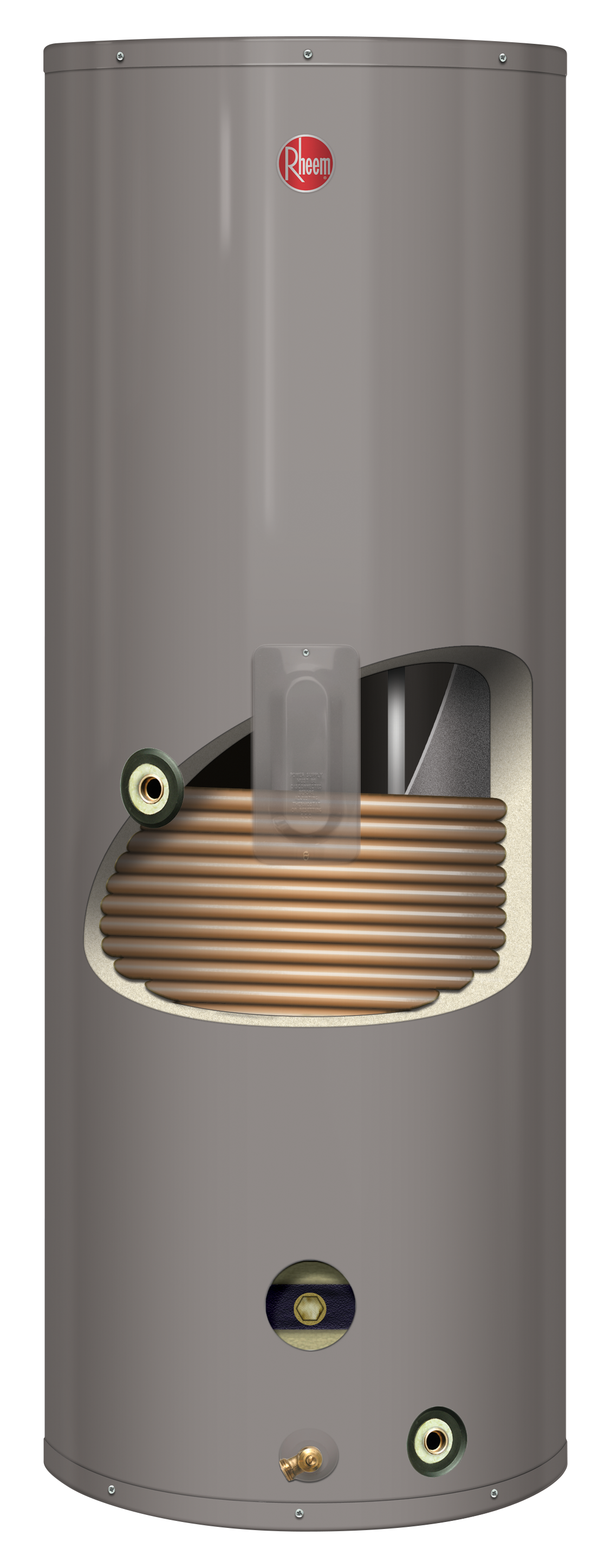 - Collector feed and return fittings located at front of tank for convenient installation